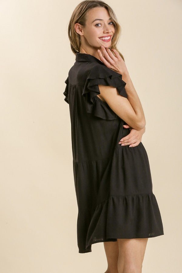 Home Dresses Umgee Black Linen Blend Tiered Dress with Ruffled Sleeves